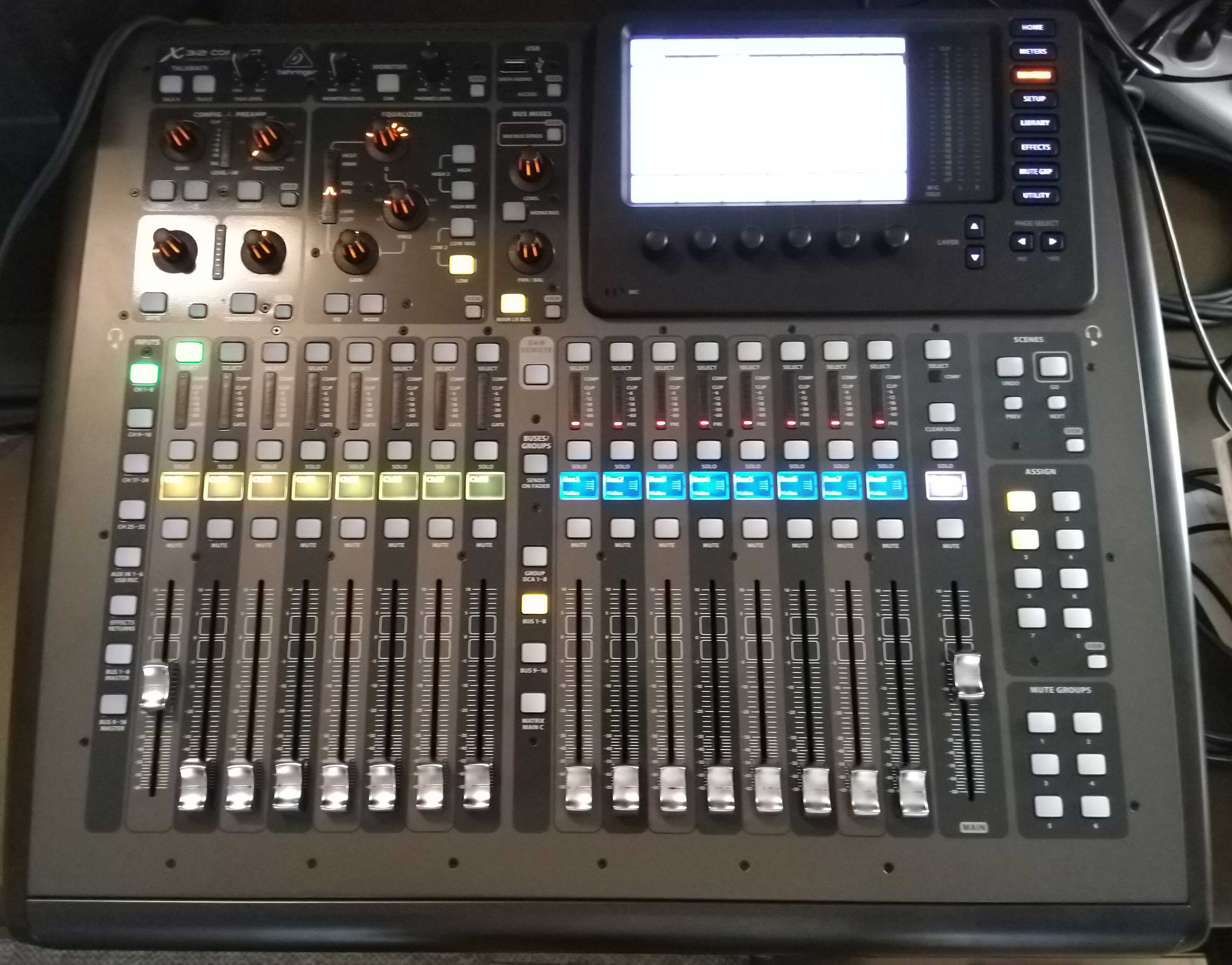 It seems like it's been a long time since I wrote my my last blog entry and that a lot has happened but it's only been four days. The reason it seems a lot has happened is that I finally got my X32 Compact to replace the MX2642 and have spent a lot of time setting it up and learning how to use it. I've rearranged the studio, mainly to minimize the mess caused by all the cables and am in the planning stages to build a cable patch bay to the right of the desk that will provide in wall connectivity to multiple locations in all of the studio rooms. That project should take a good bit of time and I should have it completed by the end of July if nothing comes up. They say a picture is worth a thousand words so rather than trying to describe the X32 and how I've rearranged the main studio I'll just show you some pictures.